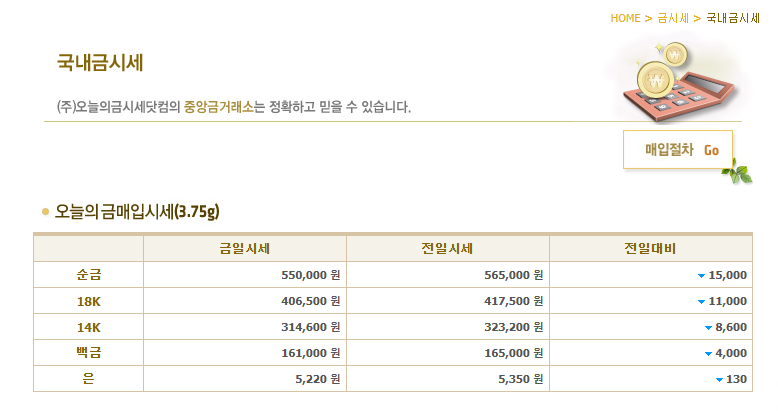 | 중앙금거래소 | 실시간 금값시세 확인 및 금 구매·판매 가능 |