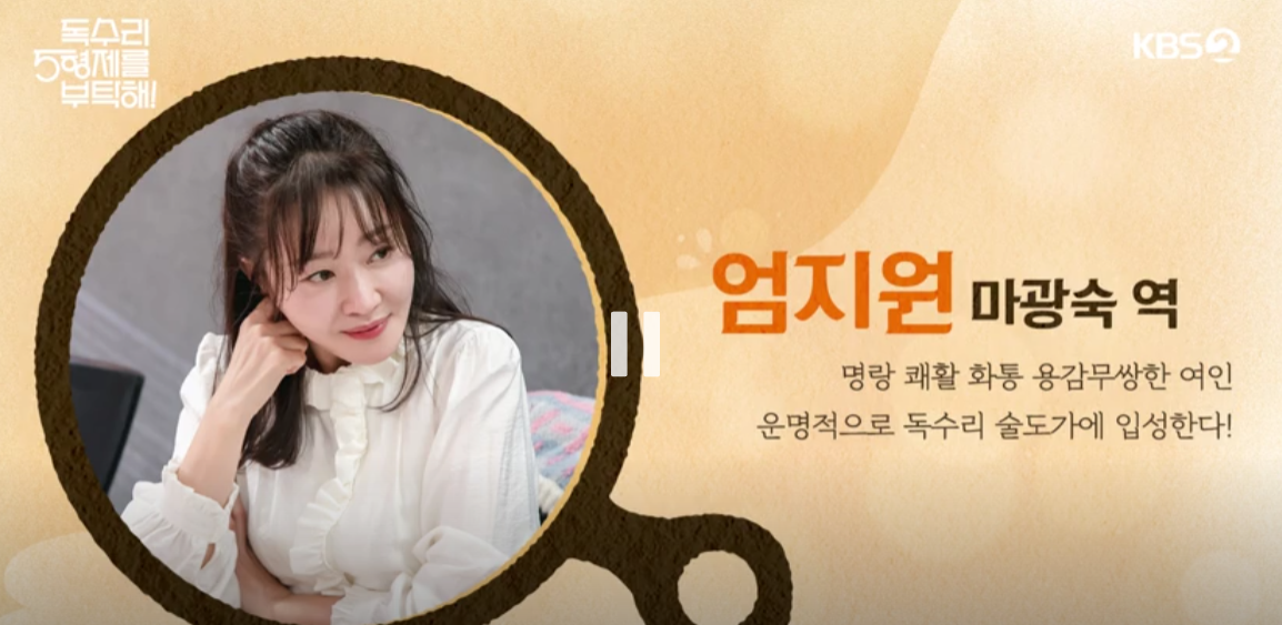독수리 5형제를 부탁해 는 오랜 전통을 자랑하는 양조장 독수리술도가를 중심으로, 각기 다른 성격을 지닌 다섯 형제와 결혼 열흘 만에 남편을 잃은 형수 마광숙(엄지원 분)의 이야기를 담고 있습니다.
