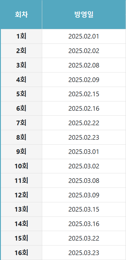 방송기간 2025년 2월 1일 ~ 7월 20일 예정