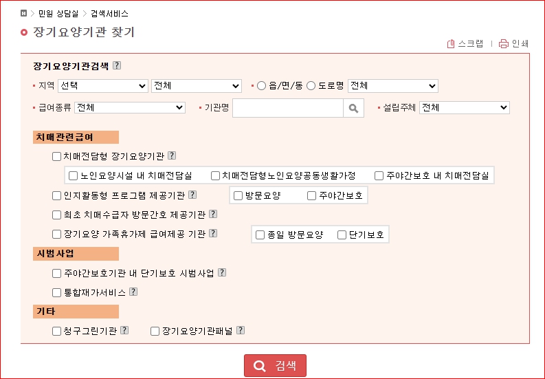 | 인지지원등급 | 치매 환자로서 장기요양 인정점수 45점 미만 | 재가 서비스만 이용 가능 (시설 입소 불가) |