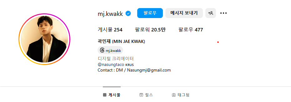 - 인스타그램: @mj.lwakk (팔로워 20만 명)