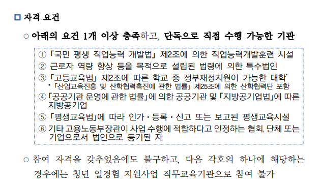 - 청년 및 기업의 니즈를 반영한 직무교육 프로그램 개발 역량 중점 평가