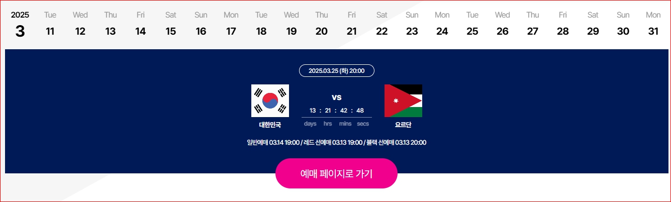 2025년 3월 25일 (월) 20:00 수원월드컵경기장 요르단