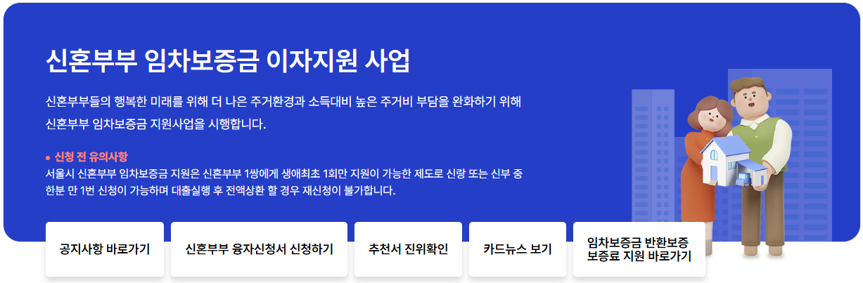 서울시 신혼부부 임차보증금 이자지원 공고문