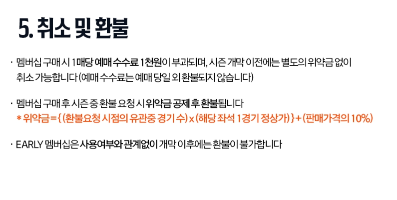 - 사용 여부와 관계없이 시즌 개막 이후에는 환불이 불가