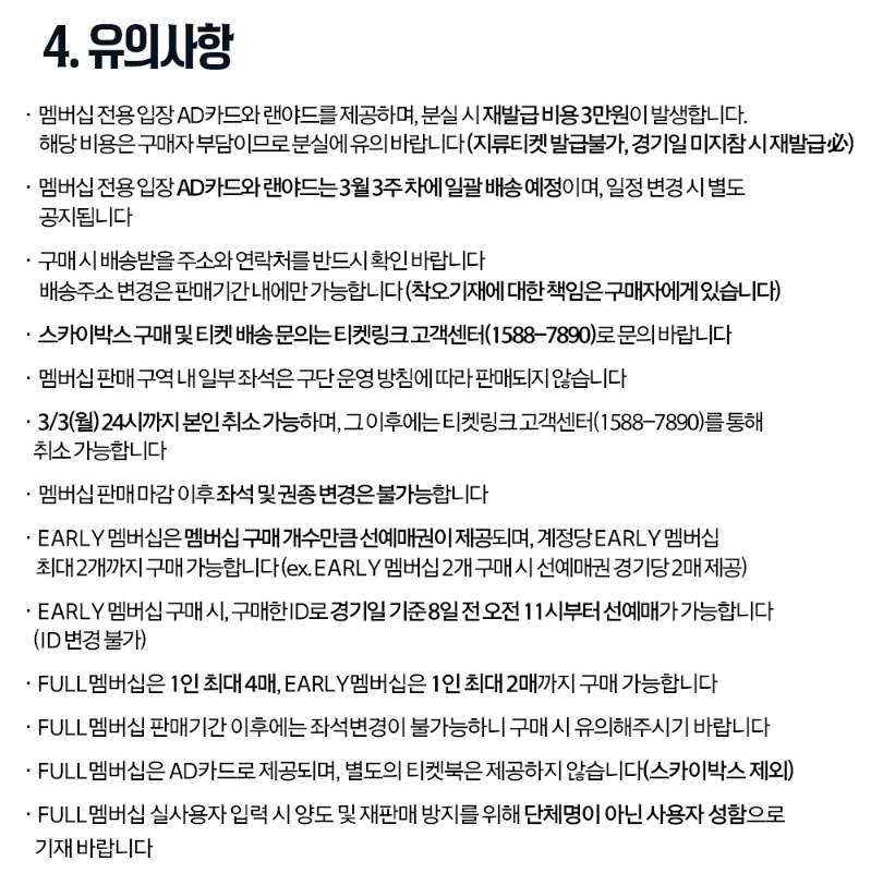 📌 멤버십 판매 마감 이후에는 좌석 및 권종 변경이 불가능하니 신중한 구매가 필요합니다.