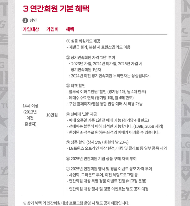 LG트윈스 팬이라면 기다렸을 2025 LG트윈스 연간회원(MEMBERSHIP) 가입 일정이 공개되었습니다.