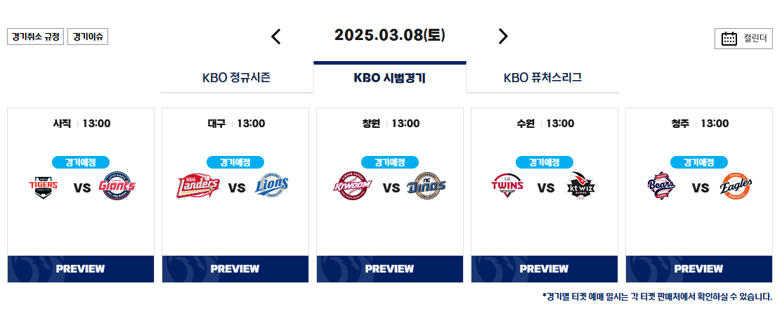 KBO 홈페이지 바로가기 경기 일정·중계·선수 기록 총정리