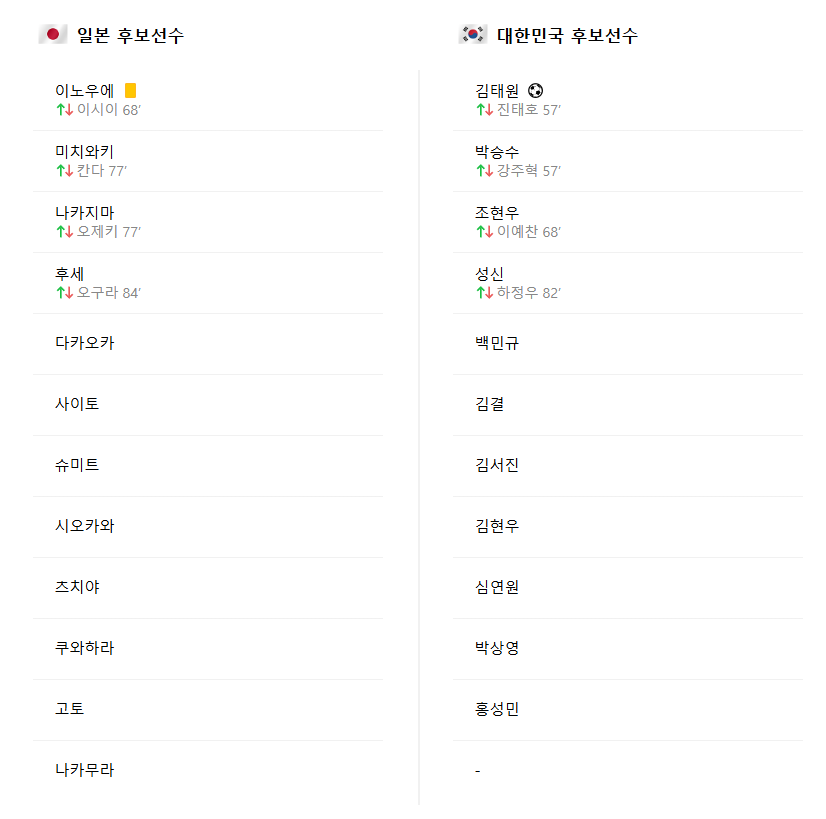 • 🇰🇷 한국: 김태원 (후반 45분)